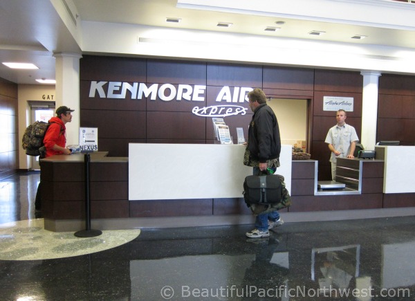 This is the same desk at which one can catch a variety of on-the-ground shuttles around the greater Seattle-Tacoma area, plus Kenmore Airlines flights to many destinations, depending on the time of day.
